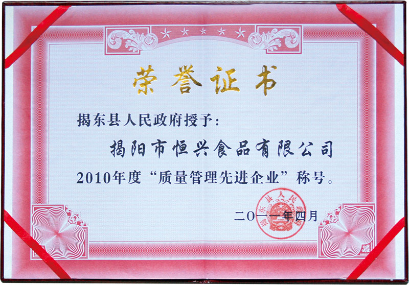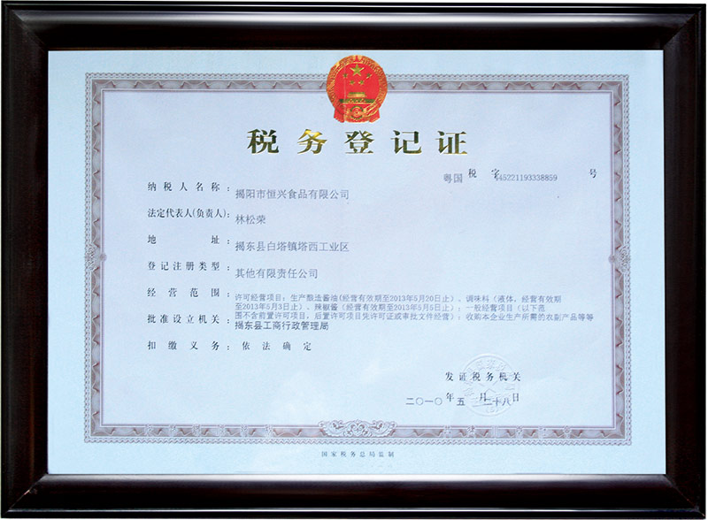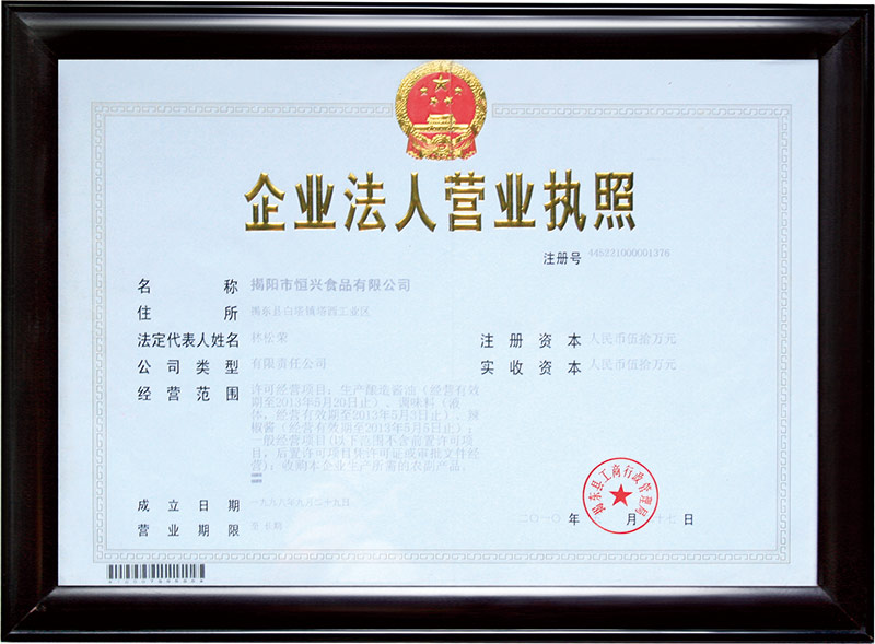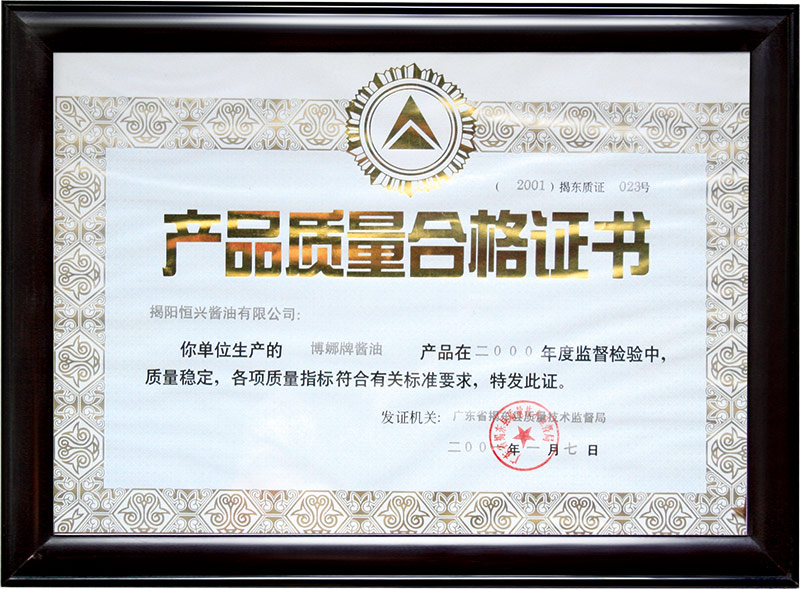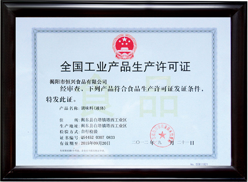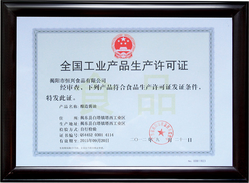 先进的生产设备、专业的技术团队、严格的质量体系,是恒兴酱油成功的基石。公司现拥有现代化厂房60亩,配备先进的生产设备和一批专业的技术人员,并实行严格的质量控制标准,确保酱油的质量卫生要求完全符合国家各项标准,连续多年被评为"质量信得过单位",并成为首批获得"全国工业产品生产许可证"、"产品质量合格证书"、"农业部全面质量管理达标证书"、"计量保证体系合格证"等特殊荣誉的企业之一。
