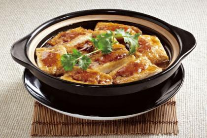 鲮鱼肉:150克、碎猪肉:150克、青葱:4棵、豆腐16块:500克、水:30毫升
